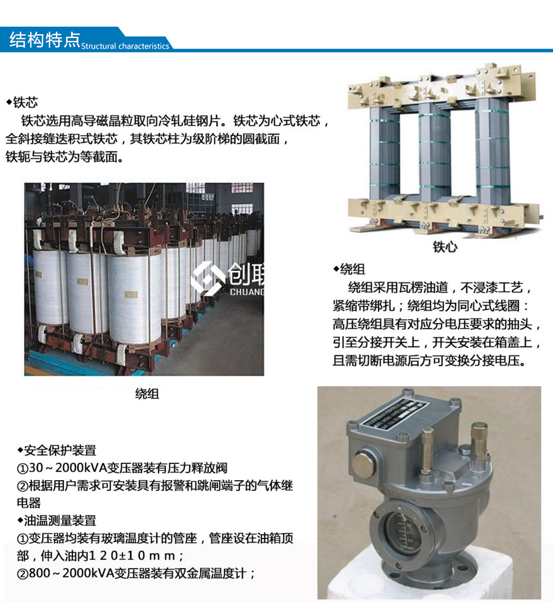 a、油浸式變壓器低壓繞組除小容量采用銅導線以外,一般都采用銅箔繞抽的圓筒式結構;高壓繞組采用多層圓筒式結構,使之繞組的安匝分布平衡,漏磁小,機械強度高,抗短路能力強。